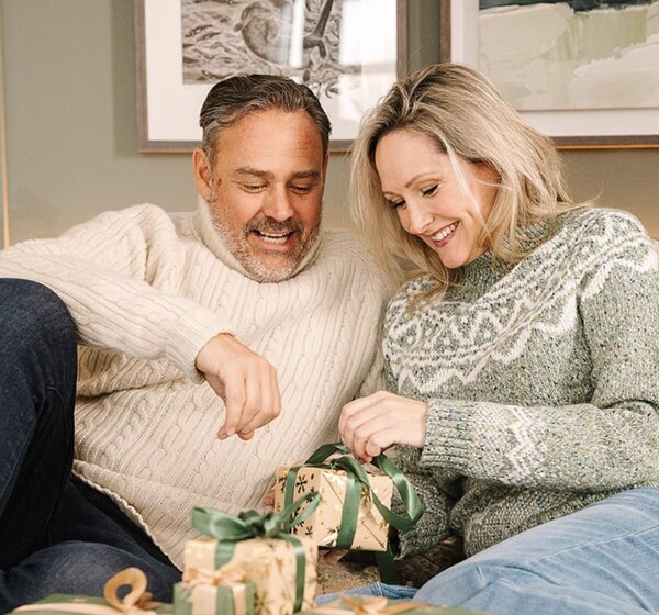 Fresh model couple Dan Corsi and Helen Leigh experiencing the festive magic in a luxury lakeside cabin at South Lodge for the Exclusive Collection hotel group.